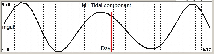 Fig. 2. M1 tidal variation (black line) v.s time of occurrence (red bar) of the EQ.
