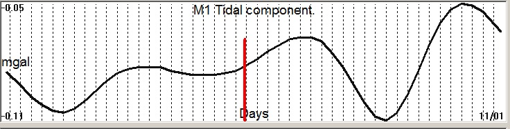 Fig. 2. M1 tidal variation (black line) v.s time of occurrence (red bar) of the EQ.