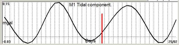 Fig. 2. M1 tidal variation (black line) v.s time of occurrence (red bar) of the EQ.