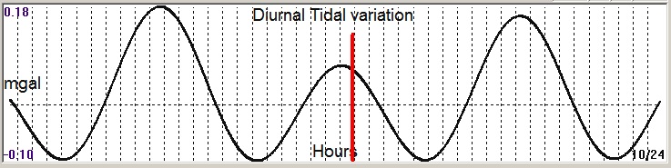 Fig. 3. Diurnal (K2) tidal variation (black line) v.s time of occurrence (red bar) of the EQ.