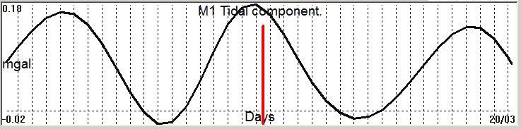 Fig. 2. M1 tidal variation (black line) v.s time of occurrence (red bar) of the EQ.