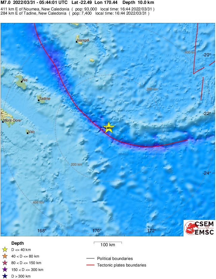 M 7.0 - SOUTHEAST OF LOYALTY ISLANDS - 2022-03-31 05:44:01 UTC