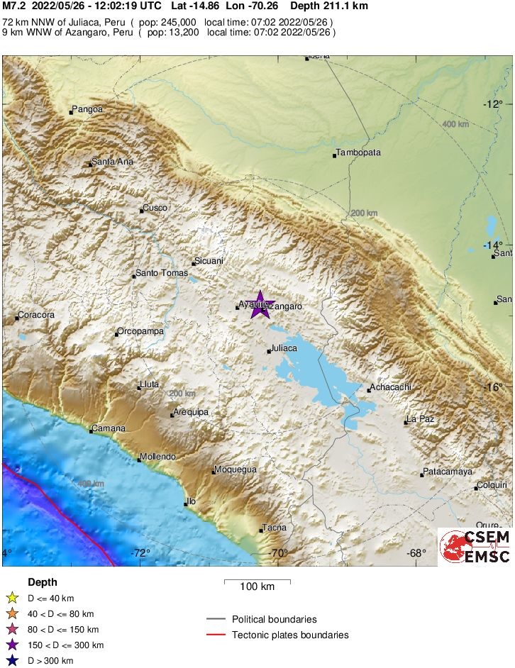 F Fig. 1. EQ Location (colored star, after EMSC)