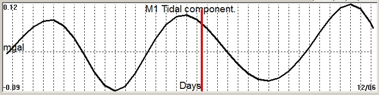 Fig. 2. M1 tidal variation (black line) v.s time of occurrence (red bar) of the EQ.