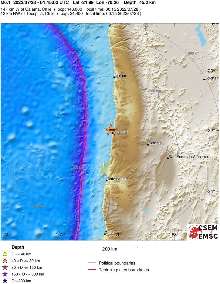 M 6.1 - OFFSHORE ANTOFAGASTA, CHILE - 2022-07-28 04:15:03 UTC
