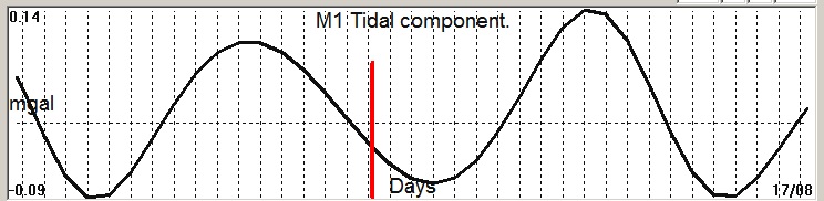 Fig. 2. M1 tidal variation (black line)  v.s time of occurrence (red bar) of the  EQ.