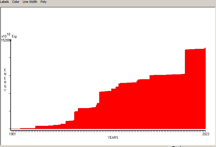 Fig. 4. Cummulative Seismic Energy Release (CSER) since 1901 in 1 month sampling interval.