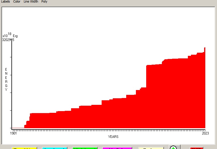 Fig. 4. Cummulative Seismic Energy Release (CSER) since 1901 in 1 month sampling interval.