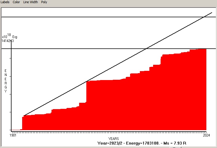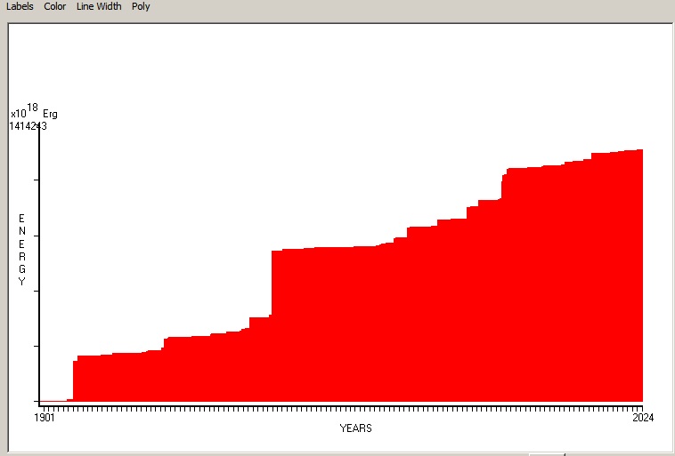 Fig. 4. Cummulative Seismic Energy Release (CSER) since 1901 in 1 month sampling interval.