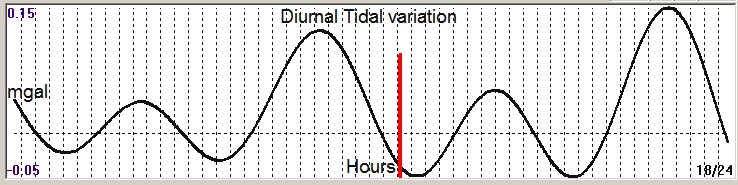 Fig. 3. Diurnal (K2) tidal variation (black line) v.s time of occurrence (red bar) of the EQ.