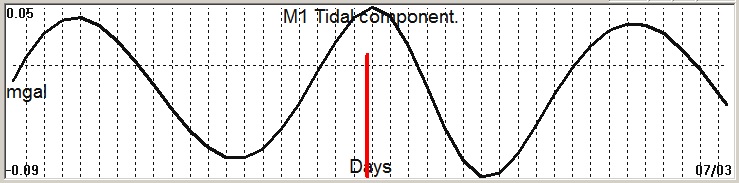 Fig. 2. M1 tidal variation (black line) v.s time of occurrence (red bar) of the EQ.