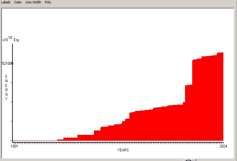 Fig. 4. Cummulative Seismic Energy Release (CSER) since 1901 in 1 month sampling interval.