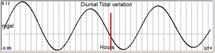 Fig. 3. Diurnal (K2) tidal variation (black line) v.s time of occurrence (red bar) of the EQ.