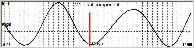 Fig. 2. M1 tidal variation (black line) v.s time of occurrence (red bar) of the EQ.