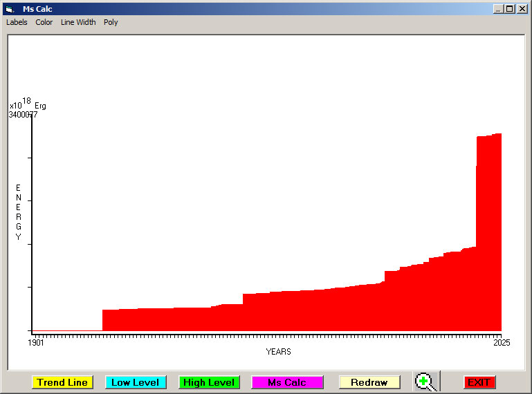 Fig. 4. Cummulative Seismic Energy Release (CSER) since 1901 in 1 month sampling interval.