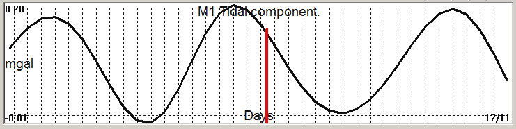 Fig. 2. M1 tidal variation (black line) v.s time of occurrence (red bar) of the EQ.
