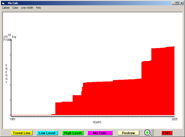 Fig. 4. Cummulative Seismic Energy Release (CSER) since 1901 in 1 month sampling interval.