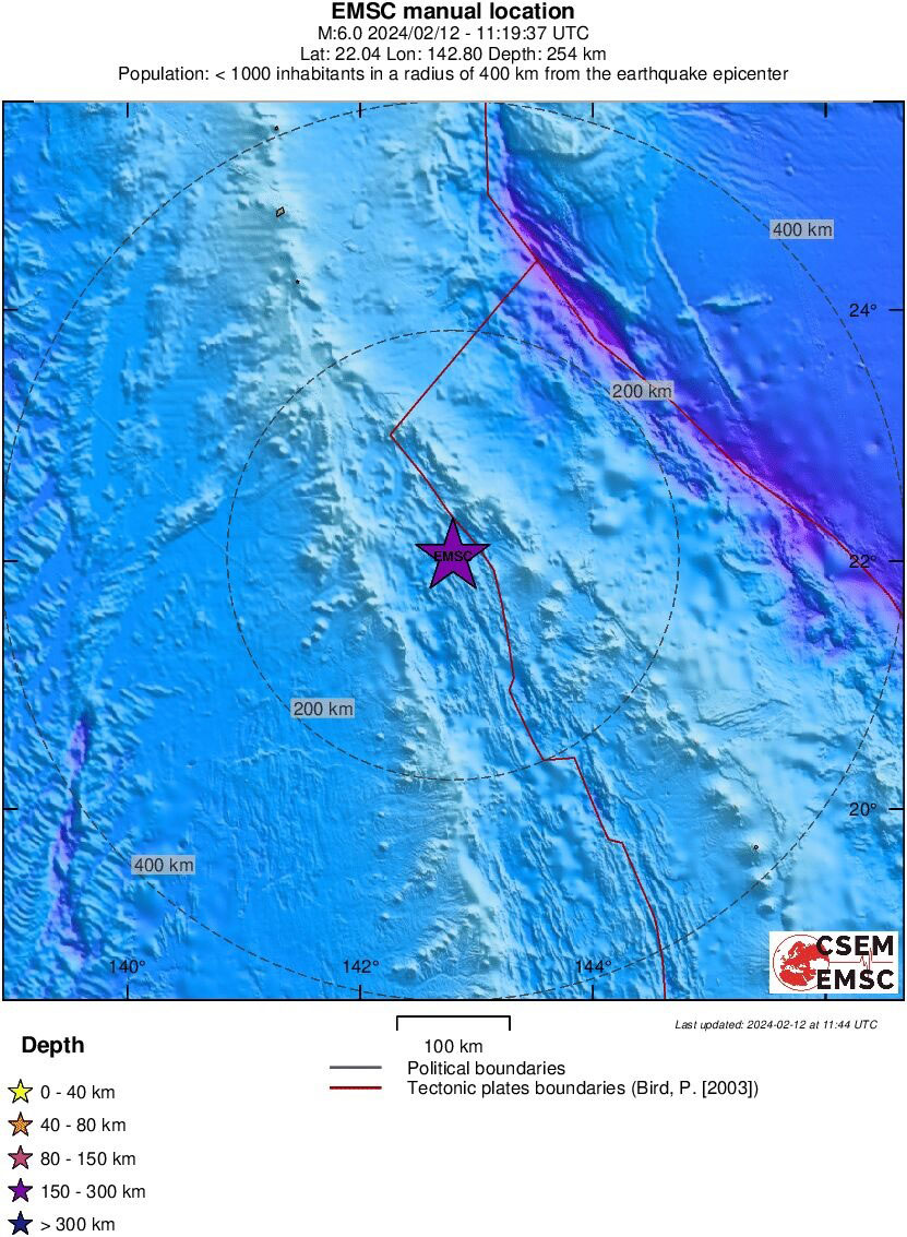 M 6.0 VOLCANO ISLANDS, JAPAN REGION 2024-02-12 11:19:37 UTC