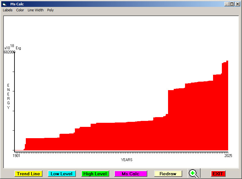 Fig. 4. Cummulative Seismic Energy Release (CSER) since 1901 in 1 month sampling interval.