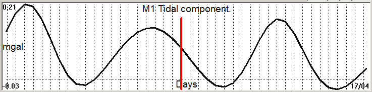 Fig. 2. M1 tidal variation (black line) v.s time of occurrence (red bar) of the EQ.
