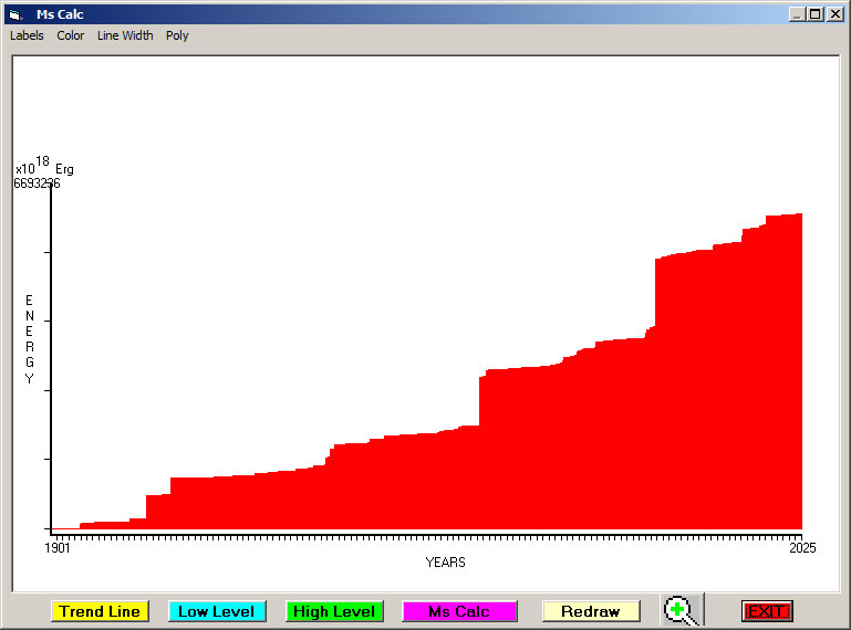 Fig. 4. Cummulative Seismic Energy Release (CSER) since 1901 in 1 month sampling interval.