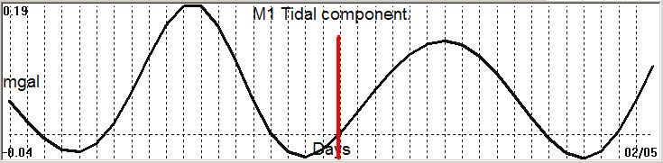 Fig. 2. M1 tidal variation (black line) v.s time of occurrence (red bar) of the EQ.