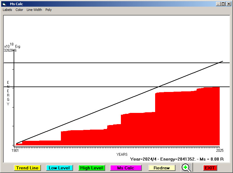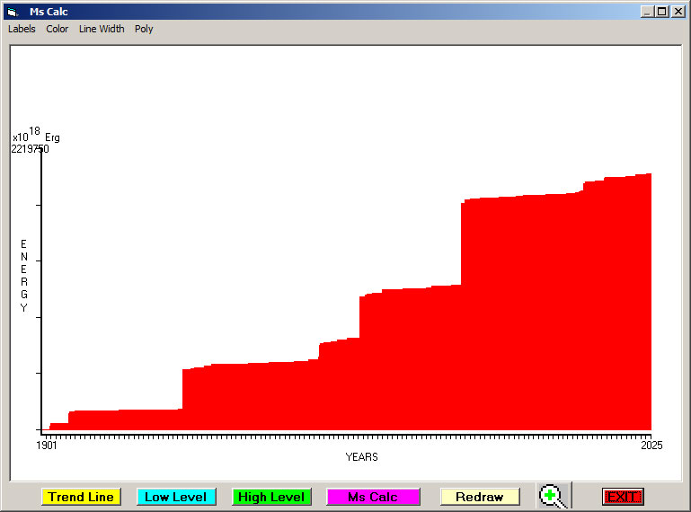 Fig. 4. Cummulative Seismic Energy Release (CSER) since 1901 in 1 month sampling interval.