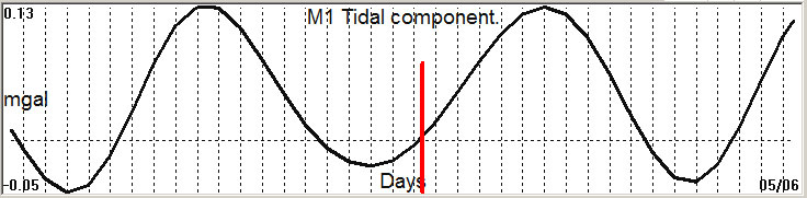 Fig. 2. M1 tidal variation (black line) v.s time of occurrence (red bar) of the EQ.