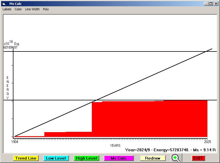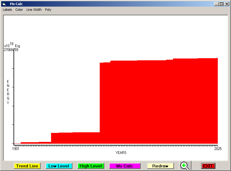 Fig. 4. Cummulative Seismic Energy Release (CSER) since 1901 in 1 month sampling interval.