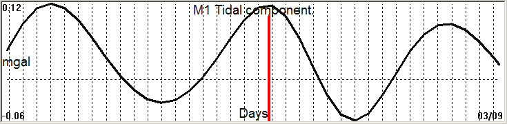 Fig. 2. M1 tidal variation (black line) v.s time of occurrence (red bar) of the EQ.