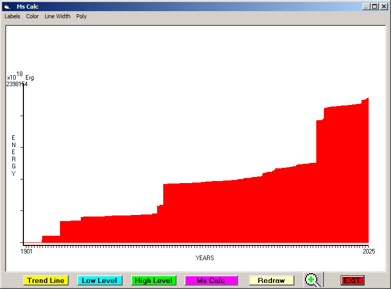 Fig. 4. Cummulative Seismic Energy Release (CSER) since 1901 in 1 month sampling interval.