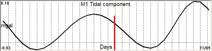 Fig. 2. M1 tidal variation (black line) v.s time of occurrence (red bar) of the EQ.