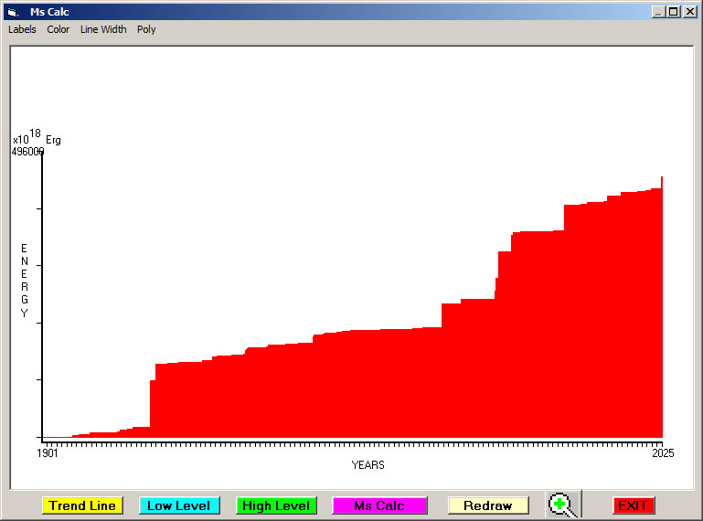 Fig. 4. Cummulative Seismic Energy Release (CSER) since 1901 in 1 month sampling interval.