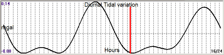 Fig. 3. Diurnal (K2) tidal variation (black line) v.s time of occurrence (red bar) of the EQ.