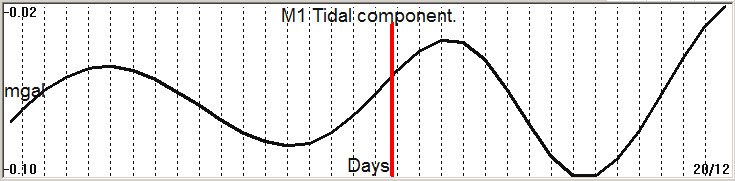 Fig. 2. M1 tidal variation (black line) v.s time of occurrence (red bar) of the EQ.
