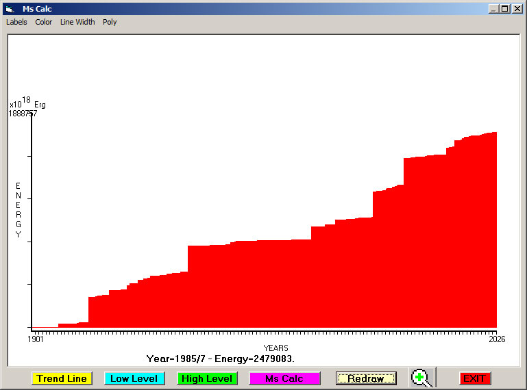 Fig. 4. Cummulative Seismic Energy Release (CSER) since 1901 in 1 month sampling interval.