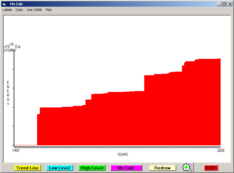 Fig. 4. Cummulative Seismic Energy Release (CSER) since 1901 in 1 month sampling interval.