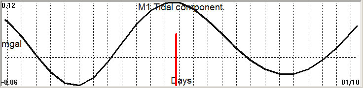 Fig. 2. M1 tidal variation (black line) v.s time of occurrence (red bar) of the EQ.