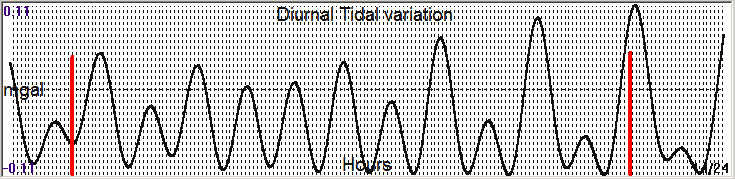 Fig. 3. Diurnal (K2) tidal variation (black line) v.s time of occurrence (red bar) of the EQ.