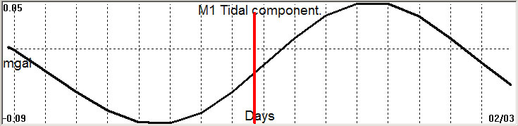 Fig. 2. M1 tidal variation (black line) v.s time of occurrence (red bar) of the EQ.