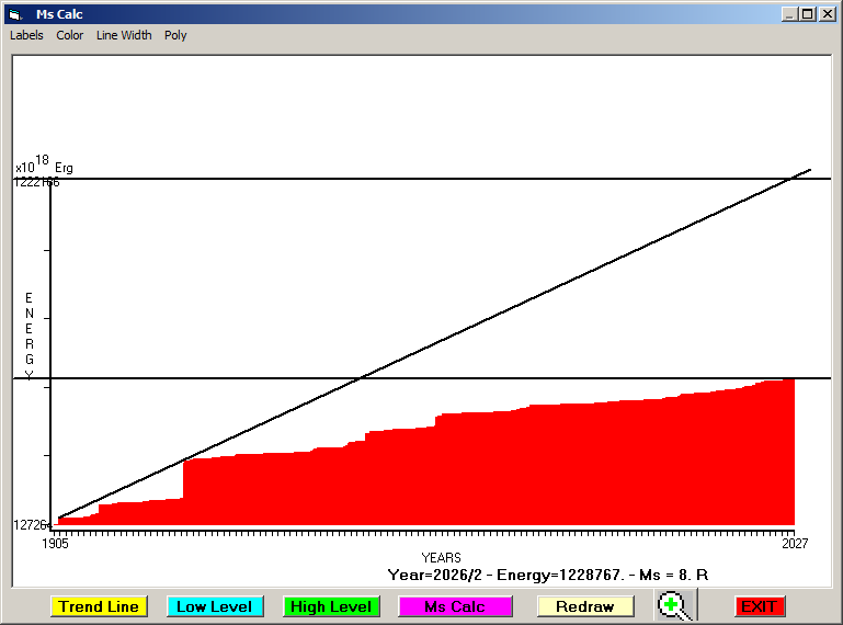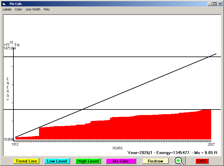 Accumulated seismic energy expressed in terms of EQ magnitude :
