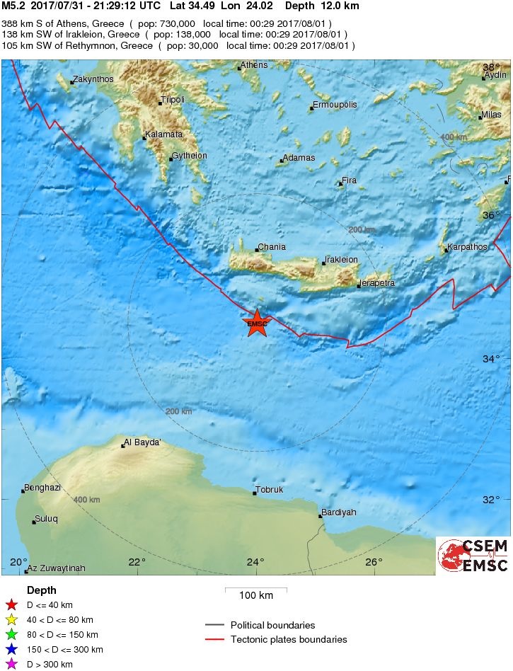 M 5.2 - CRETE, GREECE - 2017-07-31 21:29:12 UTC