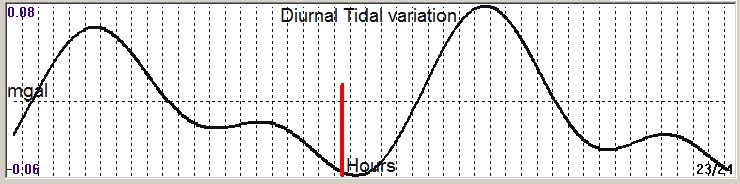 Fig. 3. Diurnal (K2) tidal variation (black line) v.s time of occurrence (red bar) of the EQ.