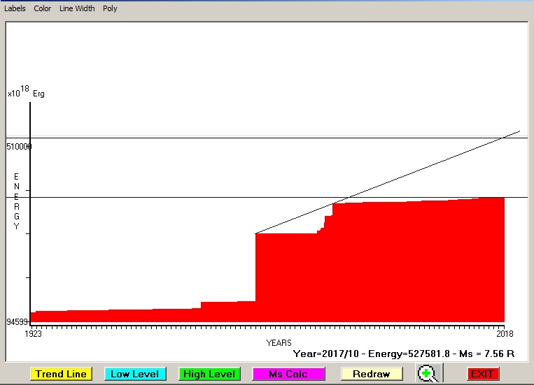 Fig. 4. Expected EQ magnitude due to application of the LSEFM (Lithospheric Seismic Energy Flow Model) on past seismic history of the regional seismogenic area.