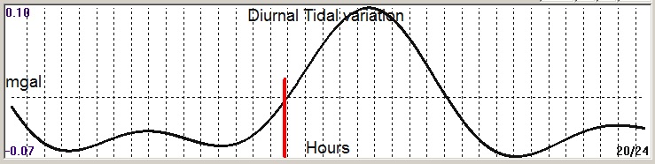 Fig. 3. Diurnal (K2) tidal variation (black line) v.s time of occurrence (red bar) of the EQ.