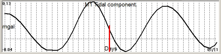Fig. 2. M1 tidal variation (black line) v.s time of occurrence (red bar) of the EQ.