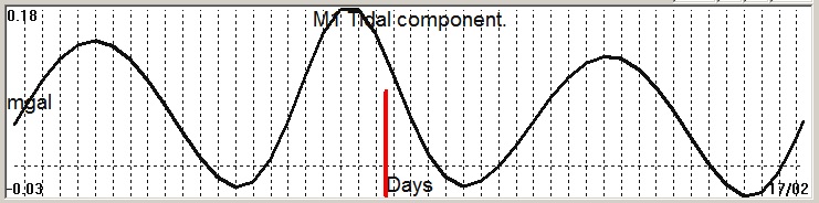 Fig. 2. M1 tidal variation (black line) v.s time of occurrence (red bar) of the EQ.