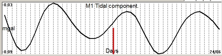 Fig. 2. M1 tidal variation (black line) v.s time of occurrence (red bar) of the EQ.