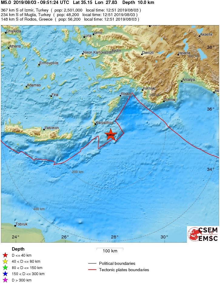 Fig. 1. EQ Location (red star, after EMSC) .