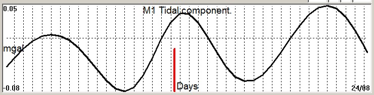Fig. 2. M1 tidal variation (black line) v.s time of occurrence (red bar) of the EQ.